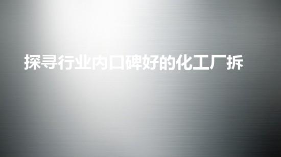 探寻行业内口碑好的化工厂拆除品牌:安全环保与效率的平衡艺术
