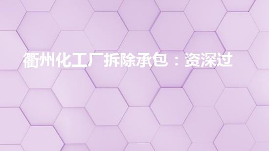 衢州化工厂拆除承包:资深经过、安全要点与环保实践全刨析 在化工产业转型升级都市安全进步的双重驱动下,化工厂的拆除已成为一项资深性极强危险极高的系统工程。...