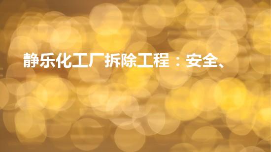 静乐化工厂拆除工程:安全、环保与资源再生的三重挑战 在化工行业转型升级与安全进步规划的双重驱动下,老旧化工厂的拆除已成为一项常态化的资深工程。与普通建筑...