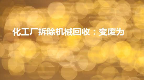 化工厂拆除机械回收:变废为宝绿色智慧当一座化工厂结束其生产使命,庞大的区与林立的设备面临拆除时,一个不可或缺却常被的环节浮出水面——化工厂拆除机械回收这绝非简单的“拆了卖铁”,而是一项融合了工程技术环...