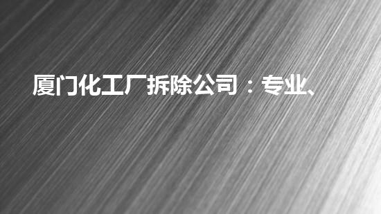 厦门化工厂拆除公司:专业、安全与的守护者在厦门这座高颜值的生态花园之城,城市更新的步伐加快和产业结构的优化升级,一批老旧、闲置不符合新环保要求的化工设施正面临拆除与改造。这简单的“一拆了之”,而是一项...