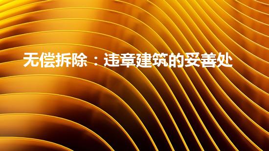 摘要:随着城市化的进程,违建问题愈加突出,逐渐成为一大社会问题。针对这一问题,无偿拆除是一种妥善的解决方式,既可以维护市容,又能保障居民的安全。本文将从专业化工角度出发,深入探讨无偿拆除:违章建筑的妥...