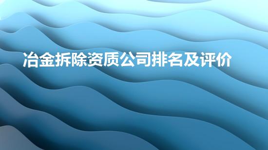 摘要:随着冶金工业和经济不断发展,冶金拆除行业也逐渐受到人们的重视。本文以冶金拆除资质公司排名及评价分析为主题,从多个方面对冶金拆除资质公司进行深入的研究和分析,以期望为读者提供有价值的信息和参考。正...