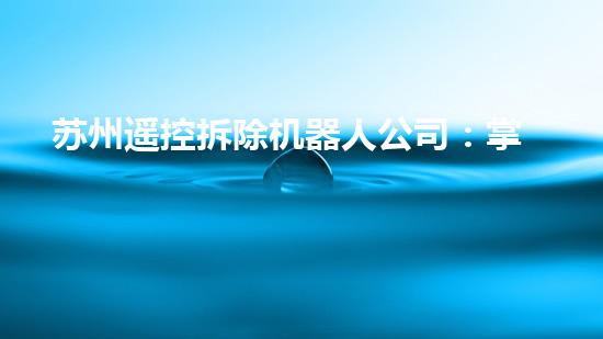 苏州遥控拆除机器人公司:掌握人类安全的未来