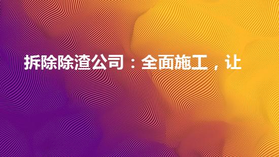 摘要:本文探讨了拆除除渣公司——全面施工,让旧房换新颜的相关知识。本文将为您提供一些背景信息,并详细介绍了该公司的服务,以及其在行业内的创新技术。正文:一、拆除除渣公司的服务范围和特点拆除除渣公司提供...