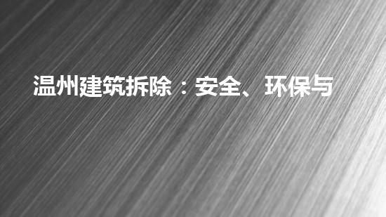 摘要随着城市化的不断发展,温州的建筑拆除成为了一个重要的话题。本篇文章将详细阐述如何在温州进行建筑拆除时,保证安全、环保和经济并重,并介绍了巴洛仕集团化工厂拆除案例以及水刀切割拆除技术的应用。正文安全...