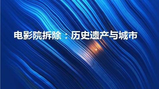 摘要:随着城市的不断发展,很多历史建筑成为了城市多彩面的一部分,电影院也不例外。然而,电影院拆除不但关系到历史遗产的保护,还关系到城市更新的发展。本文以电影院拆除:历史遗产与城市更新的碰撞为中心,通过...