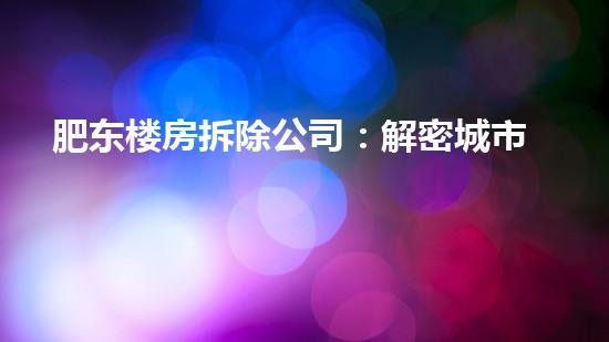 肥东楼房拆除公司:解密城市拆迁大计