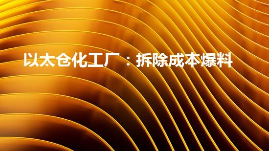 以太仓化工厂:拆除成本爆料!
