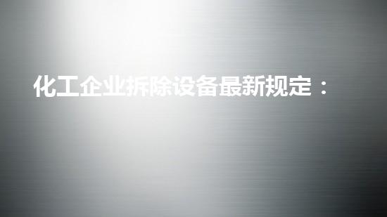 化工企业拆除设备最新规定:全面解读摘要随着化工产业的飞速发展,越来越多的老旧设备需要被拆除。为了规范拆除设备的行为,保障环境安全,我国出台了一系列拆除设备的法规和标准。本文以化工企业拆除设备最新规定为...