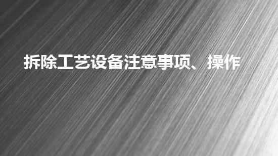 拆除工艺设备注意事项、操作流程及安全防护