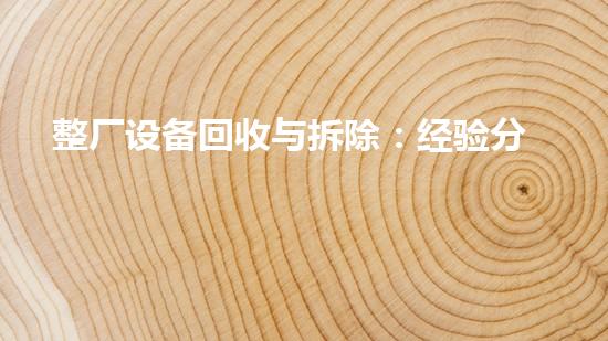 摘要:整厂设备回收与拆除是一个复杂的过程,需要经过严谨的规划和细致的实施。本文从多个方面介绍整厂设备回收与拆除的经验分享,包括项目管理、安全管理、环境保护、设备回收等,为读者提供深入的专业分析和详细介...