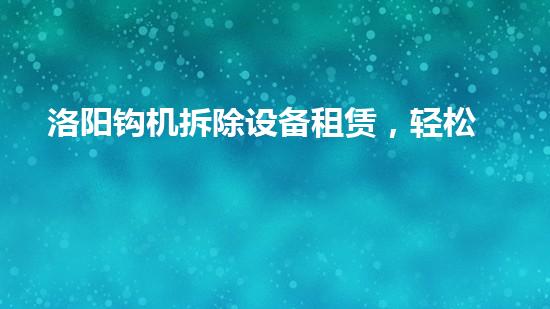 摘要:洛阳钩机拆除设备租赁是一个帮助各种行业进行拆除工作的解决方案。这篇文章将从几个方面深入探讨洛阳钩机拆除设备租赁的优势,以及如何使施工过程更轻松,更安全和更高效。正文:1. 智能化设备提高效率洛阳...