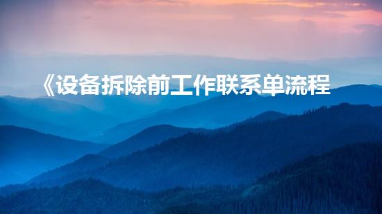 摘要:《设备拆除前工作联系单流程简介》是一篇介绍设备拆除前工作流程的文章。本文将会从四个方面详细介绍该文章内容,包括设备拆除前工作联系单介绍、拆除准备、拆除过程以及拆除后的处理。本文还将介绍专业技术巴...