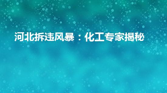 摘要:河北省启动了一场拆违风暴,以清除其国土上的违法建筑。化工专家在这场活动中发挥了关键作用。本文将揭示这场风暴的背景信息,并详细介绍了化工专家提供的爆破技术方面的知识。正文:1. 建筑拆除前需要什么...