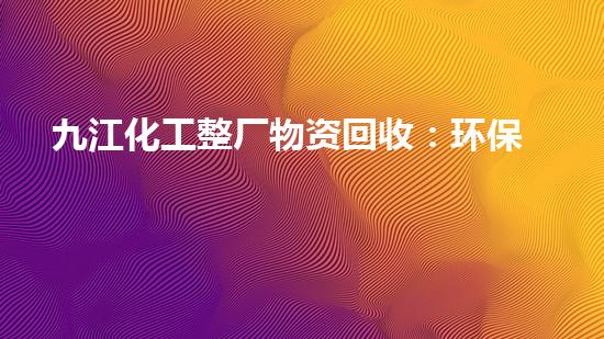 九江化工整厂物资回收:环保拆除,高效回收,助您扬长避短