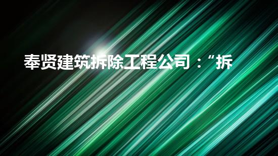 奉贤建筑拆除工程公司:“拆”出新空间
