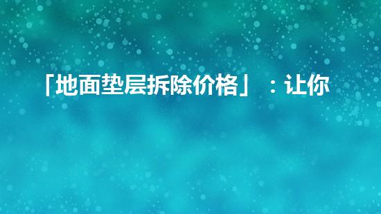 「地面垫层拆除价格」:让你了解垫层拆除公司收费