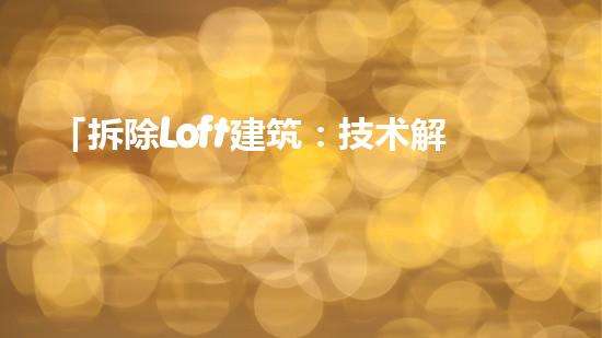 摘要本文论述了一本题为「拆除Loft建筑:技术解析与实践指南」的专业书籍,引出读者的兴趣,并提供相关背景信息。同时,本文以拆除行业专家为角色,从四个方面对此书进行专业详细深入的阐述。正文I. 工程前期...