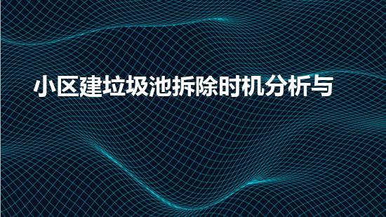 摘要:本文将对小区建垃圾池拆除时机进行深入分析和建议,从考虑因素、市场现状、环保要求、拆除技术等方面进行阐述。在正文中,作者以拆除行业专家的身份讲解了小区垃圾池拆除的重要性及必要性,从市场现状和环保要...