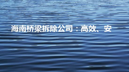 摘要:海南桥梁拆除公司是一家高效、安全、精准拆除工程的企业。在本文中,我们将从化工技术专家的角度,对海南桥梁拆除公司的工作进行详细解析,并进一步探讨拆除行业的发展趋势。正文:一、高效拆除工程海南桥梁拆...