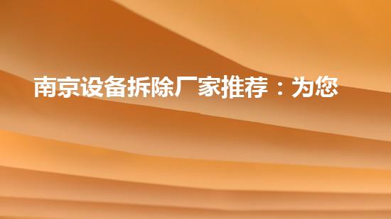 南京设备拆除厂家推荐:为您安全、快速、高效处理设备拆卸!
