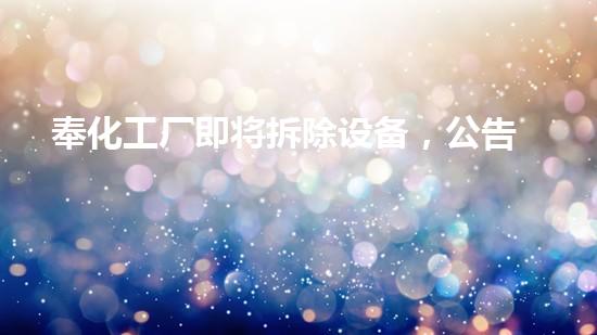 摘要:奉化工厂即将拆除设备,公告正式公布!这一消息引起了广泛的关注和讨论。作为一家实力强大的化工企业,奉化工厂在这次拆除设备之前,已经运营了多年,并作出了重要贡献。这篇文章将从多个方面对奉化工厂即将拆...