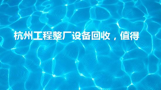 杭州工程整厂设备回收,值得信赖的专业服务商