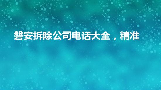 摘要:随着城市建设的不断推进,拆除行业的需求日益增长。磐安拆除公司作为一家专业的拆除服务提供商,拥有精准拆除服务和快速解决烦恼的能力。本文将介绍磐安拆除公司电话大全,并从几个方面深入阐述其精准拆除服务...