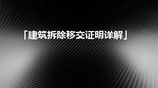 摘要:建筑拆除是一项重要的任务,而建筑拆除移交证明则是拆除行业中相当关键的文件。本文将围绕「建筑拆除移交证明详解」展开讨论,旨在帮助读者全面了解该证明文件的内容以及对其具体实施的作用。文章主要分为环保...