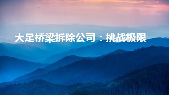 摘要:大足桥梁拆除公司是一家专注于拆除行业的企业,他们虽然在业内的知名度不太高,但是他们的技术实力和经验非常强大。在过去的几年里,大足桥梁拆除公司不断挑战极限,再造经典,以成功完成多个大型工程的拆除和...