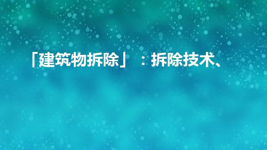 「建筑物拆除」:拆除技术、安全措施及环保影响分析