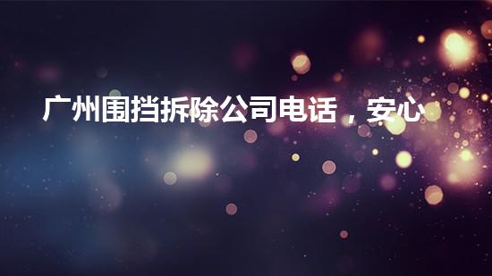 摘要广州围挡拆除公司电话,安心快速搞定!这是一个拆除行业领域的专业公司,提供高品质的围挡拆除服务。本文将从多个方面详细阐述广州围挡拆除公司电话的优势,帮助读者获得更深入的了解。正文1. 公司介绍广州围...
