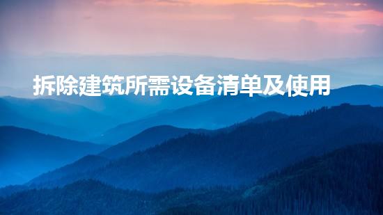 摘要:本文旨在介绍拆除建筑所需设备清单及使用指南。随着城市建设的不断发展,许多建筑物需要被拆除,这需要一些特殊的设备来完成这项工作。该指南为拆除行业专业人员提供了必要的信息,告诉他们需要哪些设备,并提...