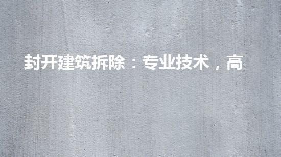 摘要:多年来,随着城市建筑面积的不断扩大,建筑拆除已成为一项重要的业务,需要高水平的专业技术和高效的服务。本文将介绍封开建筑拆除的专业技术和高效服务,并引出读者的兴趣。文章将从以下4个方面对封开建筑拆...