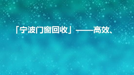 摘要:宁波门窗回收公司是一家专业从事门窗拆卸、回收的企业,其高效、省心、有保障的服务深受客户信赖。在这篇文章中,我们将从以下几个方面深入阐述宁波门窗回收的专业技术和服务:1.门窗拆卸:如何高效、安全地...