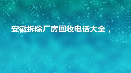 安徽拆除厂房回收电话大全,快速解决厂房拆除问题