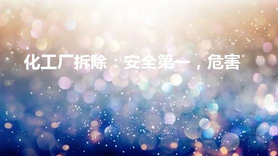 化工厂拆除:安全第一,危害不可忽视摘要:化工厂的拆除过程中,必须把安全放在第一位,并且必须重视潜在的危害,采取相应的措施进行防范。本文将针对化工厂拆除的安全问题展开探讨,并着重介绍巴洛仕集团的化工拆除...