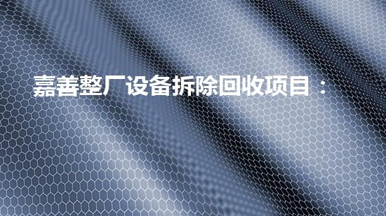 嘉善整厂设备拆除回收项目:再利用产业资源,助力环保开创新篇章