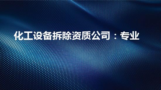 摘要:化工设备拆除资质公司是一家专门从事化工设备拆除的公司。在化工设备拆除行业,这家公司以其专业的技术、高效的服务和安全可靠的拆除方法而著称。本文将从专业技术、安全可靠、高效服务等方面详细介绍该公司,...