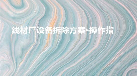 摘要:本文是一篇介绍线材厂设备拆除方案-操作指南的文章。通过此文可了解行业中设备拆除方案的技术路线和操作细节。文章主要从四个方面对于线材厂设备拆除方案进行了细致的分析和介绍:前期准备、设备拆卸、设备运...