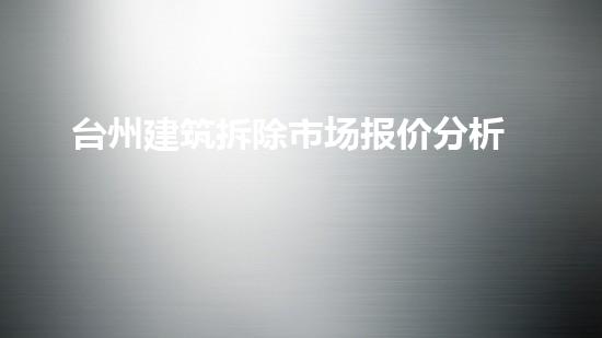 摘要:台州是浙江省的一个重要城市,建筑拆除市场在当地越来越繁荣,报价也越来越高。本文将从拆除行业专家的角度,提供台州建筑拆除市场报价分析的详细研究,探讨背景信息、特点、挑战和未来方向等方面。此外,还将...