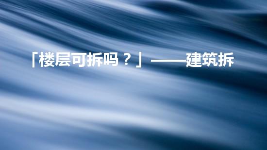 「楼层可拆吗?」——建筑拆除技术分析与实践探讨