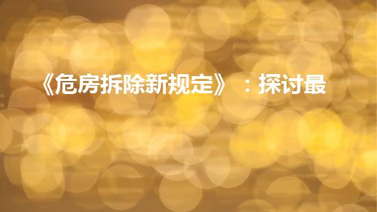 《危房拆除新规定》:探讨最新拆除标准及方案
