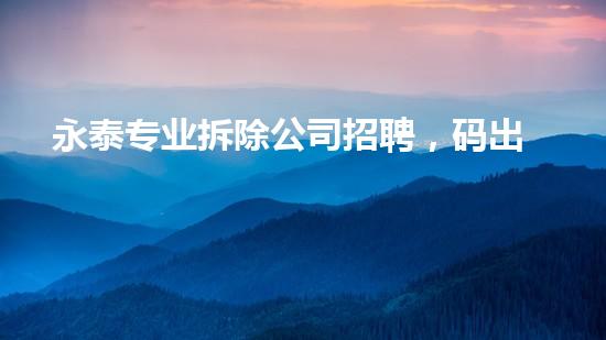 摘要:永泰专业拆除公司是一家专业从事拆除行业的企业。本篇文章将深入探讨永泰公司的招聘策略,探寻其成功之道,为想要进入拆除行业的人们提供宝贵的经验。正文:一、永泰专业拆除公司的背景永泰专业拆除公司隶属于...