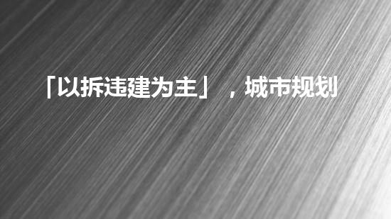 「以拆违建为主」,城市规划焕新计划曝光!