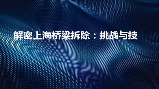 摘要:随着城市化进程不断加速,上海桥梁建设也不断推进。然而,桥梁设施的更新换代也成为了城市建设的重要任务之一。而桥梁拆除,也成为了一项重要的技术挑战。本文通过解密上海桥梁拆除中的技术难点和挑战,引出了...