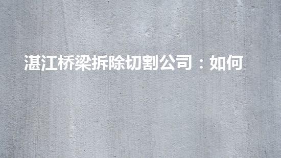 湛江桥梁拆除切割公司:如何安全高效完成拆除任务?
