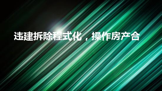 摘要:本文介绍了违建拆除程式化、操作房产合法化的内容,以引出读者的兴趣并提供一些背景信息。主要内容包括:拆除行业专家的角色、违建拆除程式化的四个方面、操作房产合法化的两个方面以及结论等。本文的特点在于...
