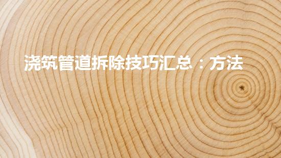 在建筑、工程、化工等领域中,浇筑管道是常见的操作,但拆除却非常困难。本文将介绍浇筑管道拆除技巧汇总:方法详解,从水刀技术、机械拆除、人工操作等方面深入解析,帮助读者更好地了解浇筑管道拆除的方法与技巧。